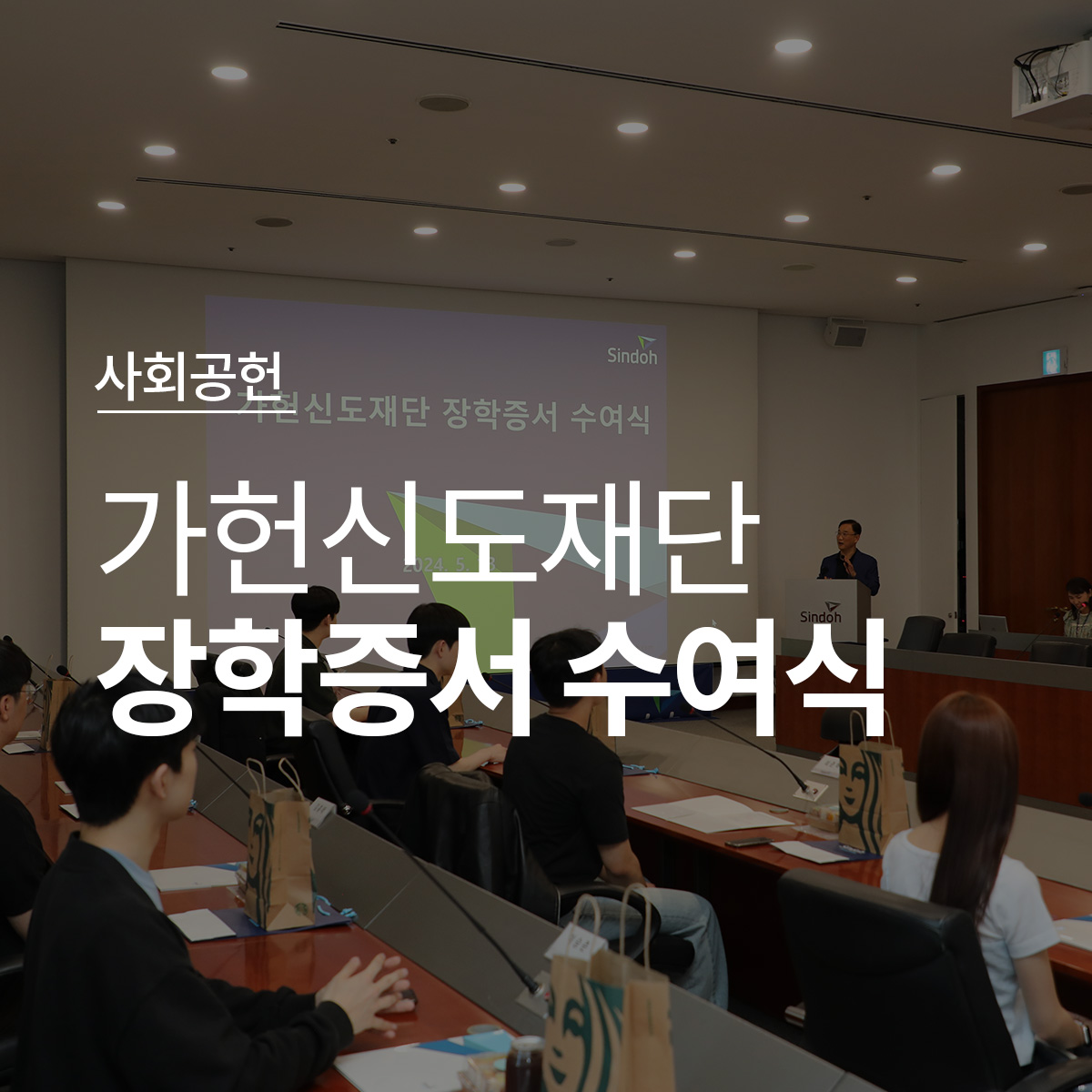 수여식에는 사무국장과 실무진, 장학생들이 참석한 가운데 가헌신도재단에 대한 소개와 그동안의 사회공헌활동에 대한 안내, 장학증서 수여식 순서로 진행되었습니다.